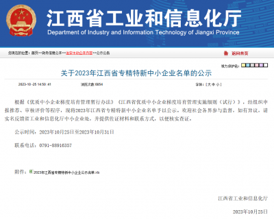 2023年10月25日,我司取得了2023年江西省專精特新中小企業(yè)名單公示