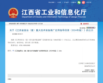 2024年9月11日江西東銳智能裝備科技股份有限公司獲得關(guān)于《江西省首臺(tái)(套)重大技術(shù)準(zhǔn)備推廣應(yīng)用指導(dǎo)目錄(2024年版)》的公...